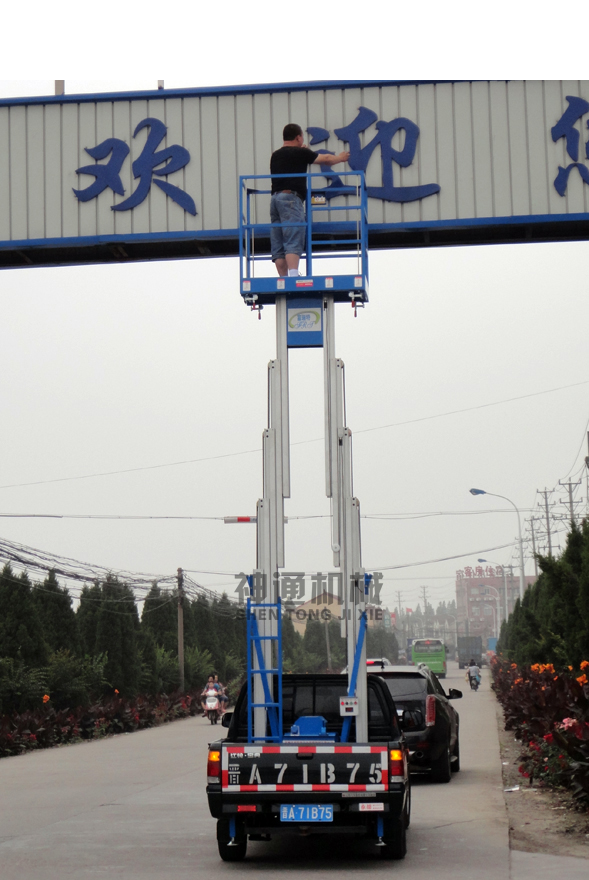 產(chǎn)品規(guī)格:車載鋁合金式升降平臺根據(jù)升降高度可分為:單柱6、8、10米,雙柱6、8、10、12米升降平臺,設(shè)備載重150公斤至200公斤??蛻艨筛鶕?jù)需求選用解放、東風、輕騎、福田、電瓶車等任何車型,設(shè)備直接采用汽車或電瓶的直接動力升降。